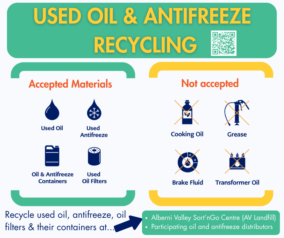 A little oil or antifreeze in the natural environment can do a lot of damage to local ecosystems. Interchange Recycling collects a significant volume of used oil each year – nearly 50 million litres in B.C. in 2023. Participating in their program keeps oil and antifreeze from entering waterways and affecting marine life.