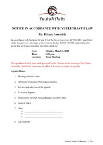 Assembly Notice March 1 2021